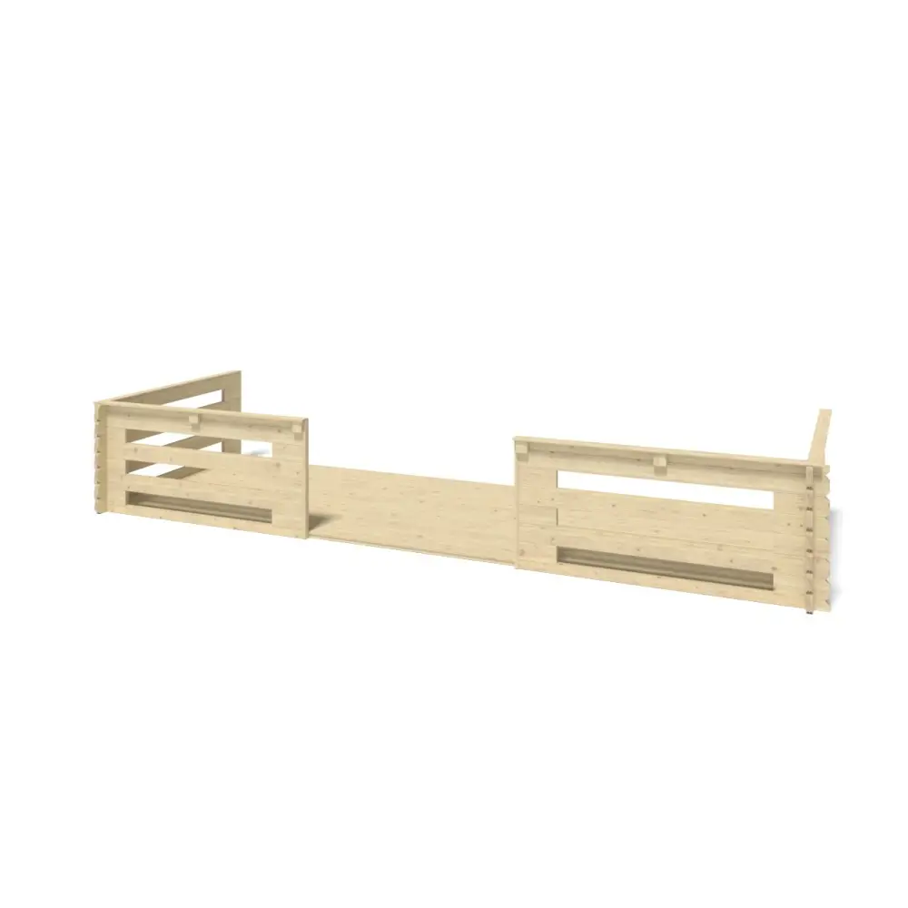 Le modèle DOM747+DOM553+DOM555+POD04 n'est pas imprégné. Il faut le protéger immédiatement avec des produits de protection du bois disponibles sur le marché. L’entretien doit être effectué selon les besoins, mais au moins tous les deux ans. Quand même, le bois est un matériau vivant alors il est naturel qu'il fonctionne lorsque les conditions météorologiques changent (température et humidité). Le changement de la couleur du bois et de sa structure dépendent des conditions dans lesquelles il se trouve et n'affecte pas sa qualité.