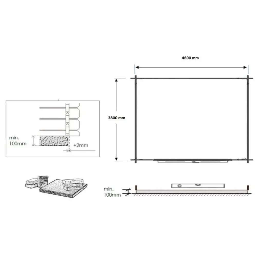 Sur les photos, il y a un chalet en bois DOM370 d'une superficie de 19.2m2. Dimensions au sol : L 4.8m et P 4m.