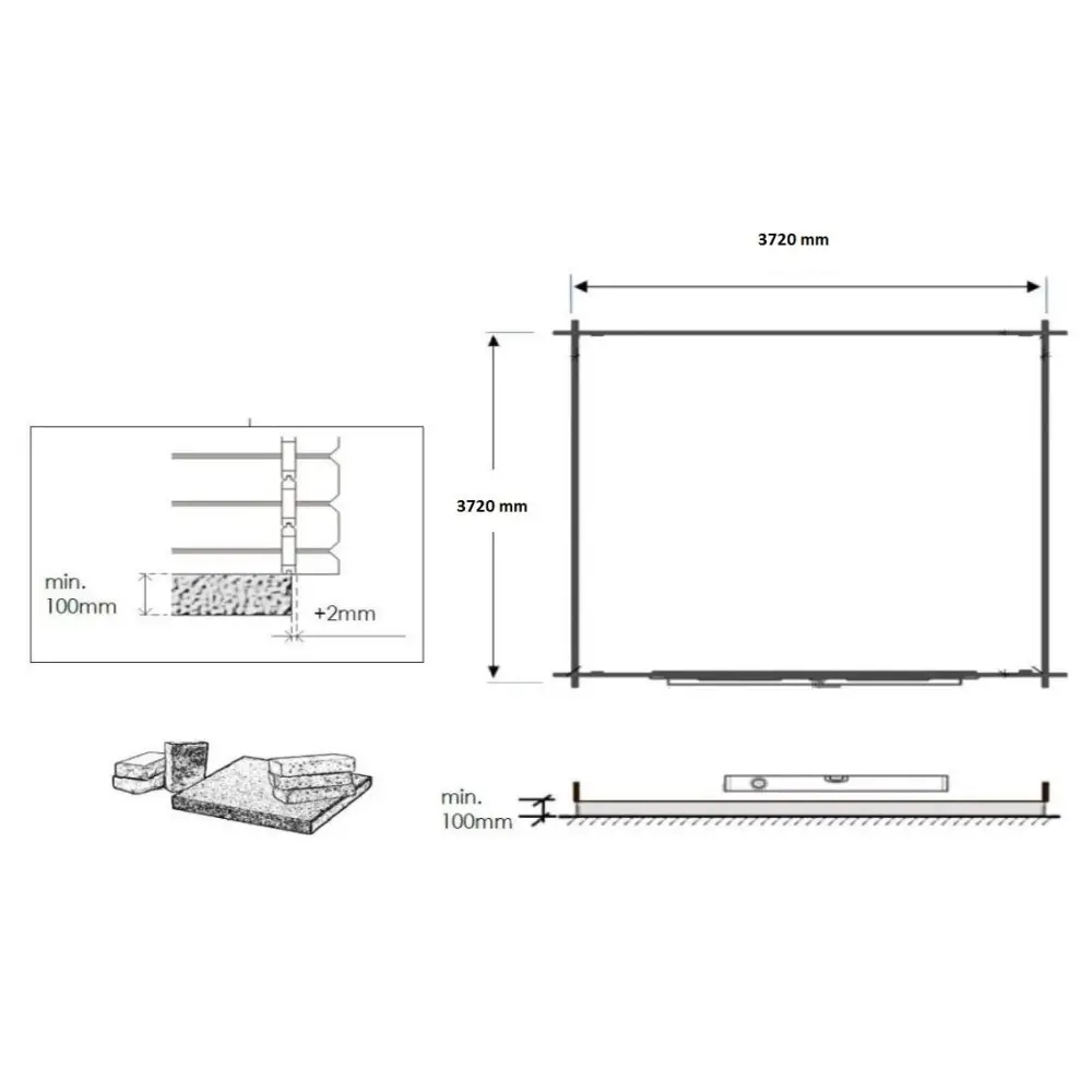 Sur les photos, il y a un chalet en bois DOM563 d'une superficie de 15.2m2. Dimensions au sol : L 3.9m et P 3.9m.