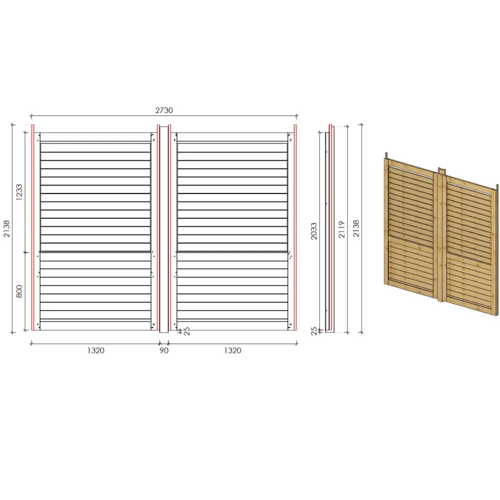L’ensemble comprend deux panneaux, mesurant 132 cm de large et 214 cm de haut. Chaque panneau est équipé de lames en bois réglables de 123 cm de hauteur, vous permettant de contrôler pleinement votre intimité et l’aération. Par temps chaud, vous pouvez les ouvrir pour laisser passer l’air frais, ou les fermer lors des soirées plus fraîches pour plus de confort et d’intimité.