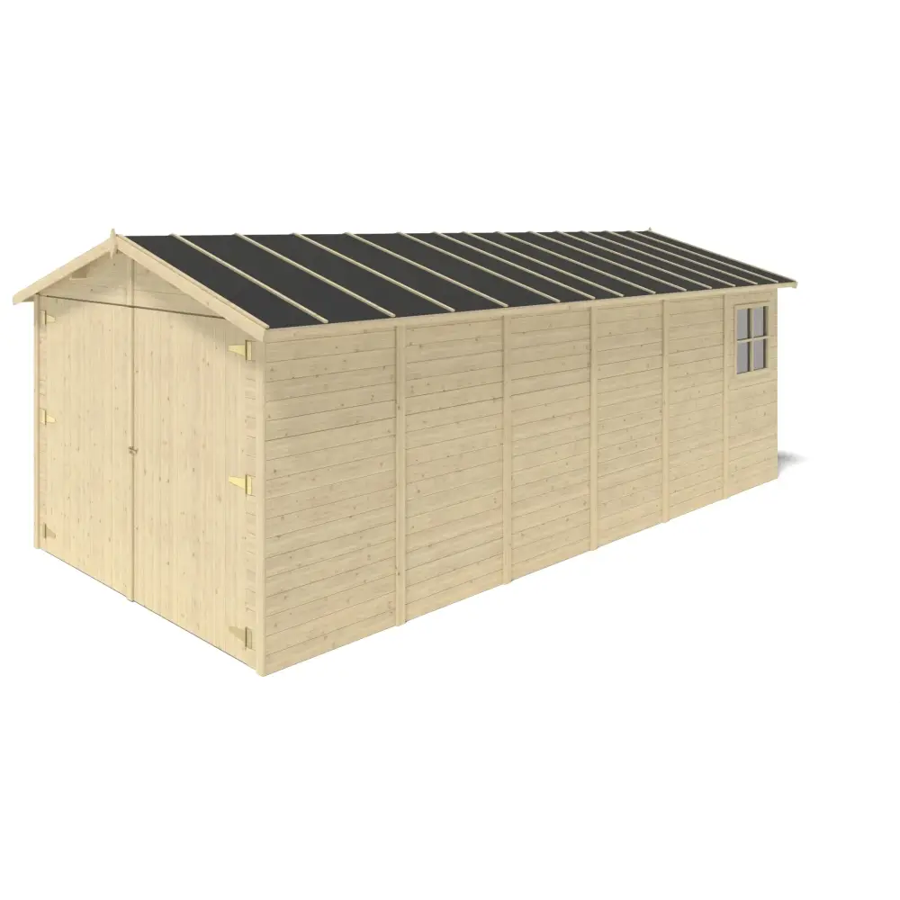 Le garage GAR29 n'est pas imprégné. Il faut le protéger immédiatement avec des produits de protection du bois disponibles sur le marché. L’entretien doit être effectué selon les besoins, mais au moins tous les deux ans. Quand même, le bois est un matériau vivant alors il est naturel qu'il fonctionne lorsque les conditions météorologiques changent (température et humidité). Le changement de la couleur du bois et de sa structure dépendent des conditions dans lesquelles l’abri se trouve et n'affecte pas sa qualité.