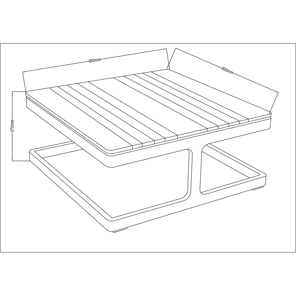 Cadre léger en aluminium peint en poudre de couleur blanche RAL9010. Bois de teck d'une épaisseur de 18 mm.